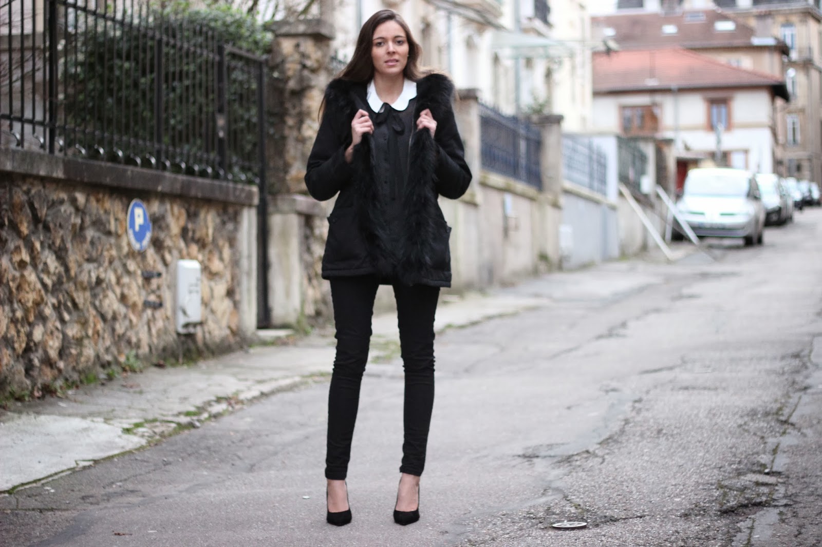 Il fallait bien commencer l'année par une tenue : voilà la mienne. Un col claudine festonné, un - presque - total look noir finalement... Evidemment, toujours accompagnée de mon sac Betty x Lancaster, né de la collaboration entre la célèbre blogueuse Betty et la marque de maroquinerie Lancaster. Je vous propose d'ailleurs d'en trouver un similaire ici à moindre prix.